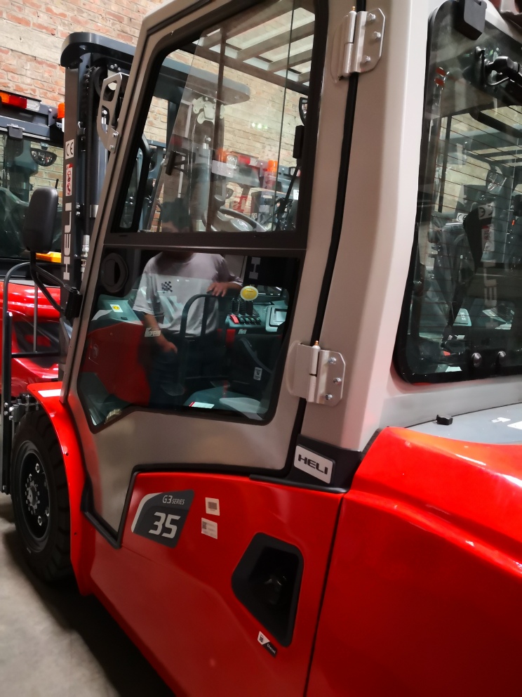 HELI dieseltrukki nostokapasiteetti 3,5 tonnia. Moottorina Kubota V2403-CR-T STAGE V sekä mastona ZSM450.