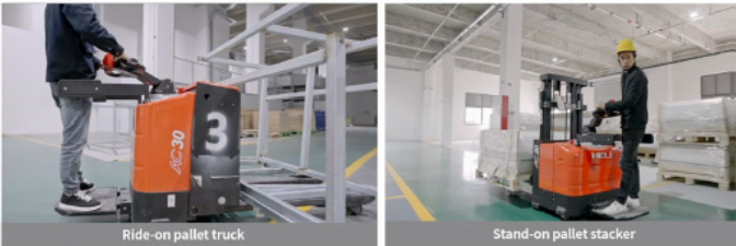 - In order to better serve the transportation of auxiliary materials HELI provides ride-on pallet trucks and stand-on pallet stackers. HELI pallet truck is equipped with high-strength forksstepless speed regulation and automatic deceleration functions for turning which is safer; HELI stacker adopts lithium iron phosphate (LiFePo4) battery which works with high efficiency environmental friendly with no pollution.