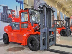 Kuvassa alhaalla: HELI litiumsähkötrukki, jonka nostokyky on 16 tonnia. Tutustu malliin tarkemmin tästä.